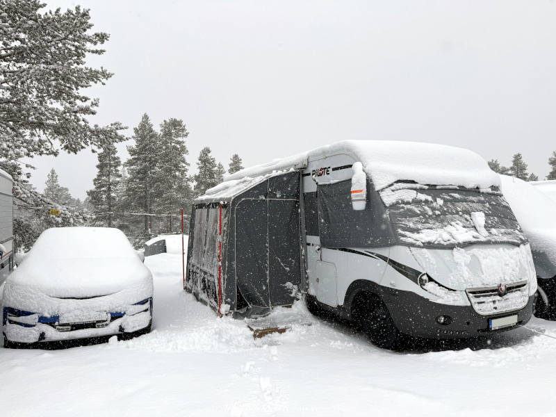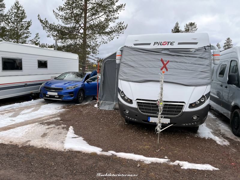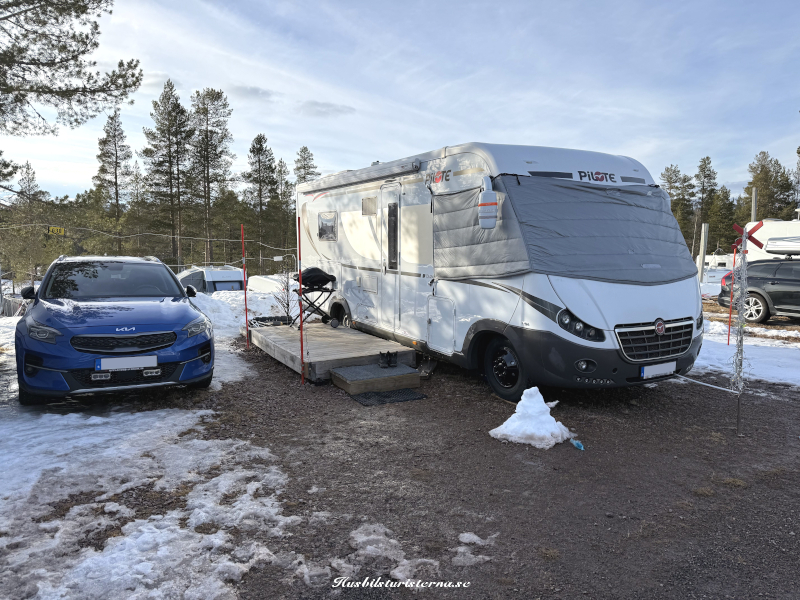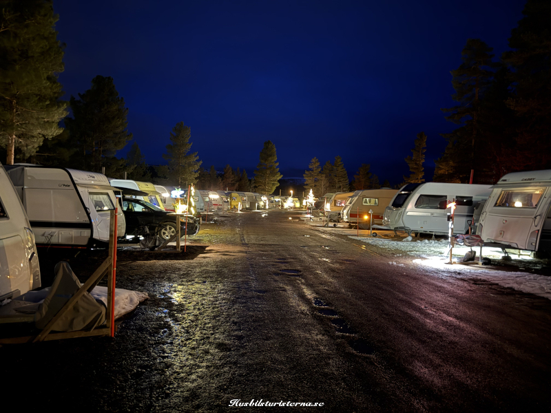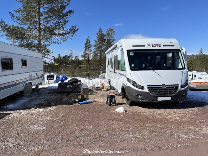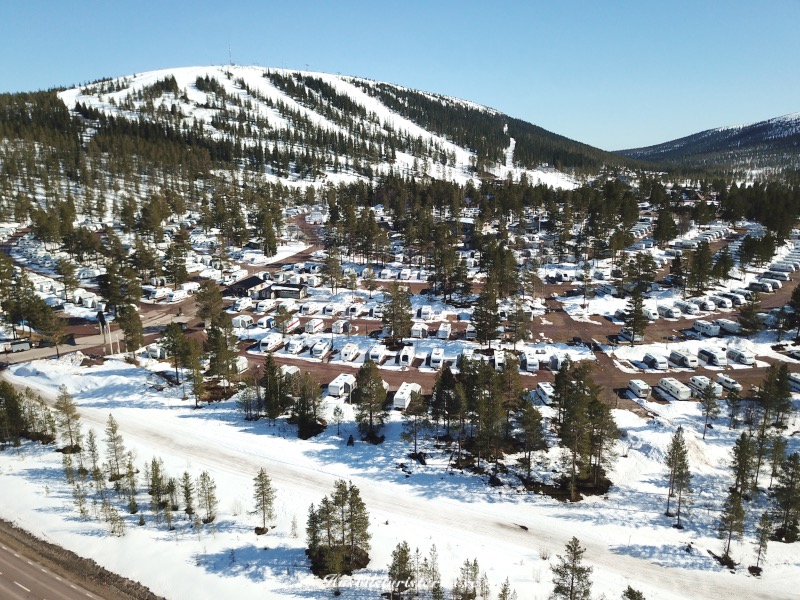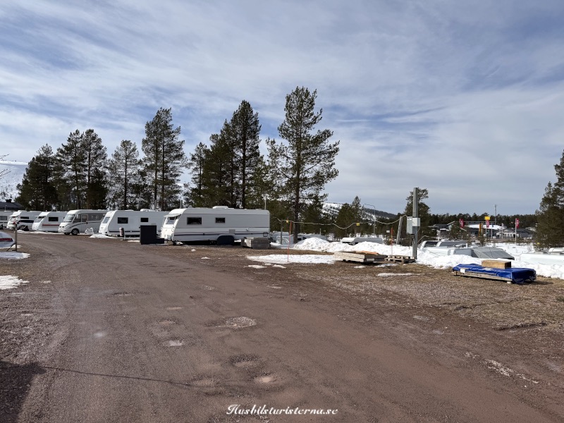 Blev ett kort från lite högre höjd innan vi lämnade campingen. Man ser att det fortfarande var gott om snö i backarna. Var en hel del ekipage som lämnade campingen varje dag, men som syns på bilden var det väldigt många kvar. Gott om tid att packa ihop, eftersom man stänger vintersäsongen den 30/4.