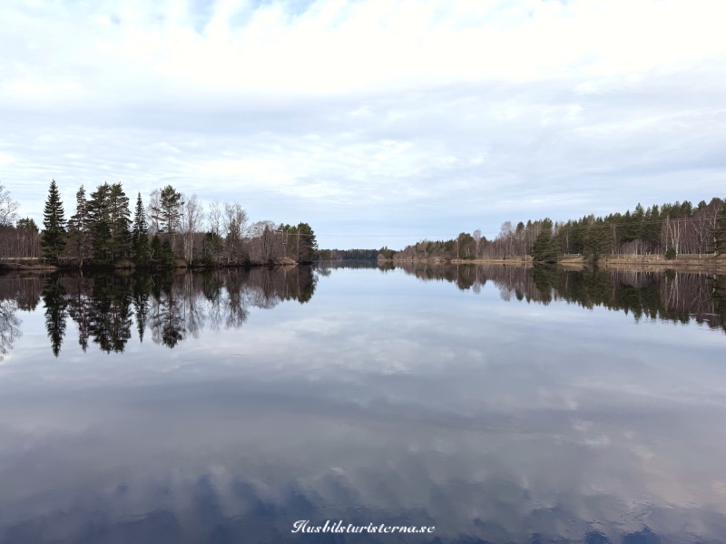 Hade båda sovit riktigt bra, kanske berodde på bruset från forsen. Västerdalälven var spegelblank, ovanför forsen.