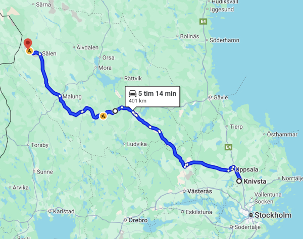 Åt lunch och åkte sen ner till Sälenbyn för att försöka få tag på antennkabel. (Misstänkte att kabeln från takantennen på husbilen blivit skadad.) Hittade till slut kabel på Sälens Bygg & Järn.